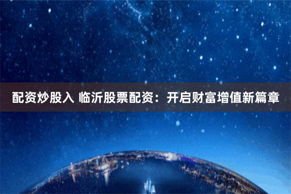配资炒股入 临沂股票配资:开启财富增值新篇章